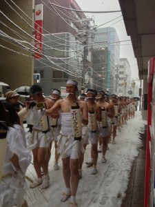 この「御神火」を目指して参拝する「裸参り」が行われていました。