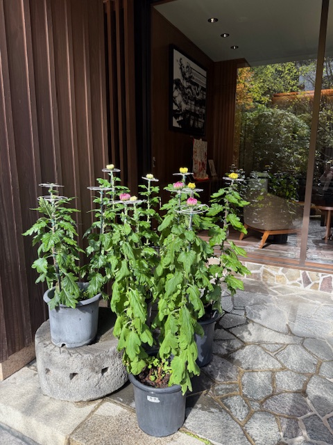 「湯主一條」の本館では清掃のパートさんが育てた菊の花が少し咲き出し、