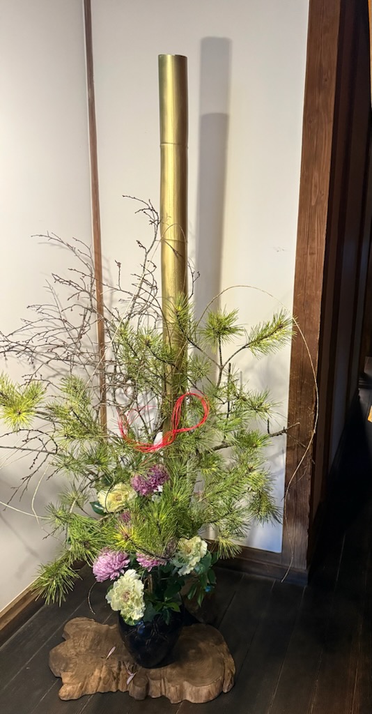 国登録有形文化財の料亭入り口に、お正月のお花を飾りました。