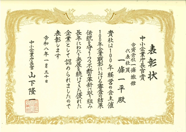 中小企業庁長官賞を受賞した2社のうち、一條旅舘(宮城県白石市)は不断の革新への取り組みや、